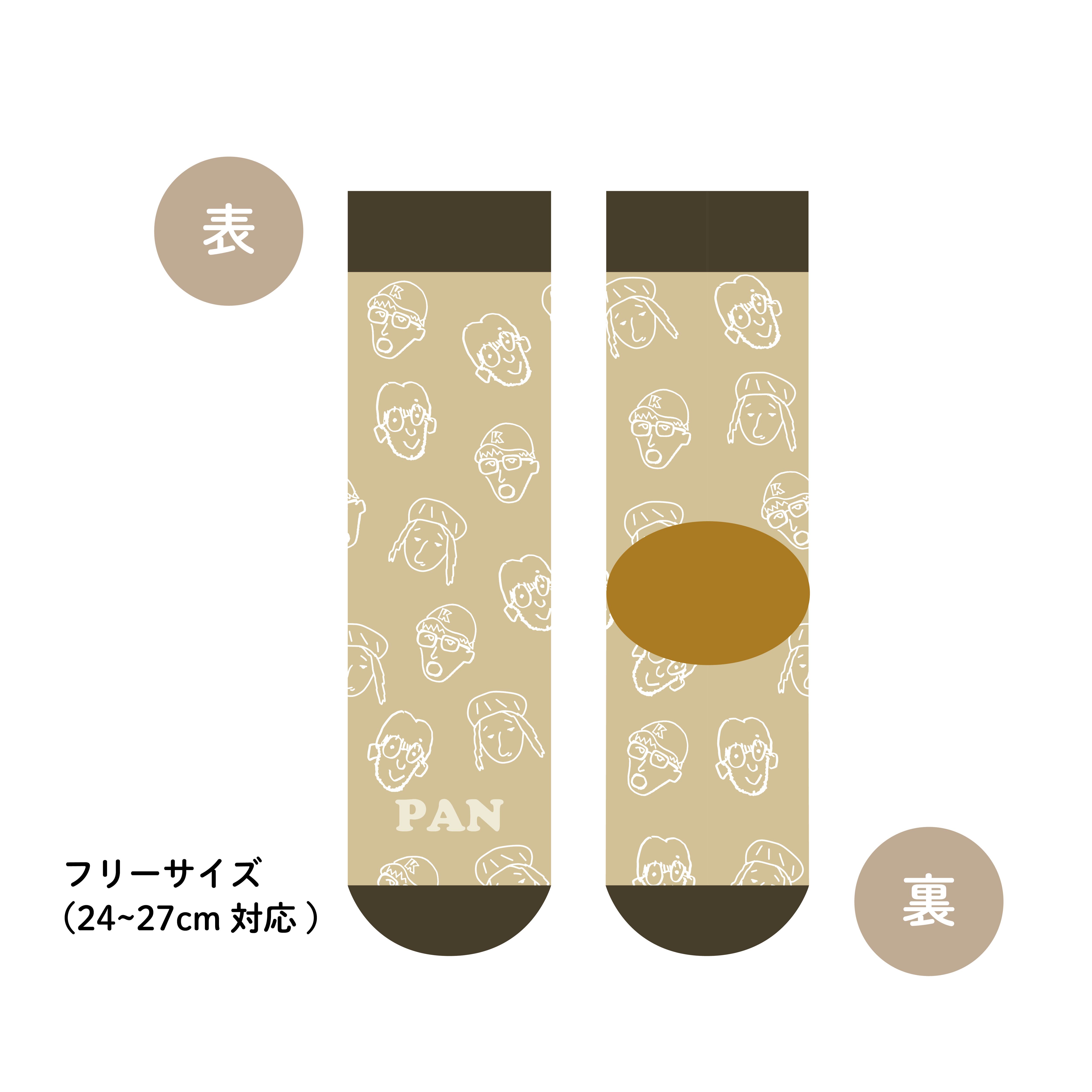 メンバー手描きの自画像がデザインされたソックス